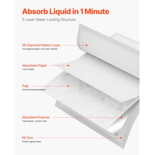 Super Absorbent: Designed with a unique 5-layer protective structure, these incontinence pads effectively absorb and lock in fluids, preventing leaks and keeping surfaces dry and clean. Made from gentle, skin-friendly material, they ensure a comfortable experience, making them perfect for caring for the elderly, children and pets.