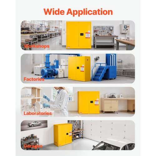 Versatile for Various Environments: This flammable liquid storage cabinet combines safety and convenience, making it ideal for workshops, manufacturing facilities, garages, and other areas where flammable or combustible materials need safe storage.