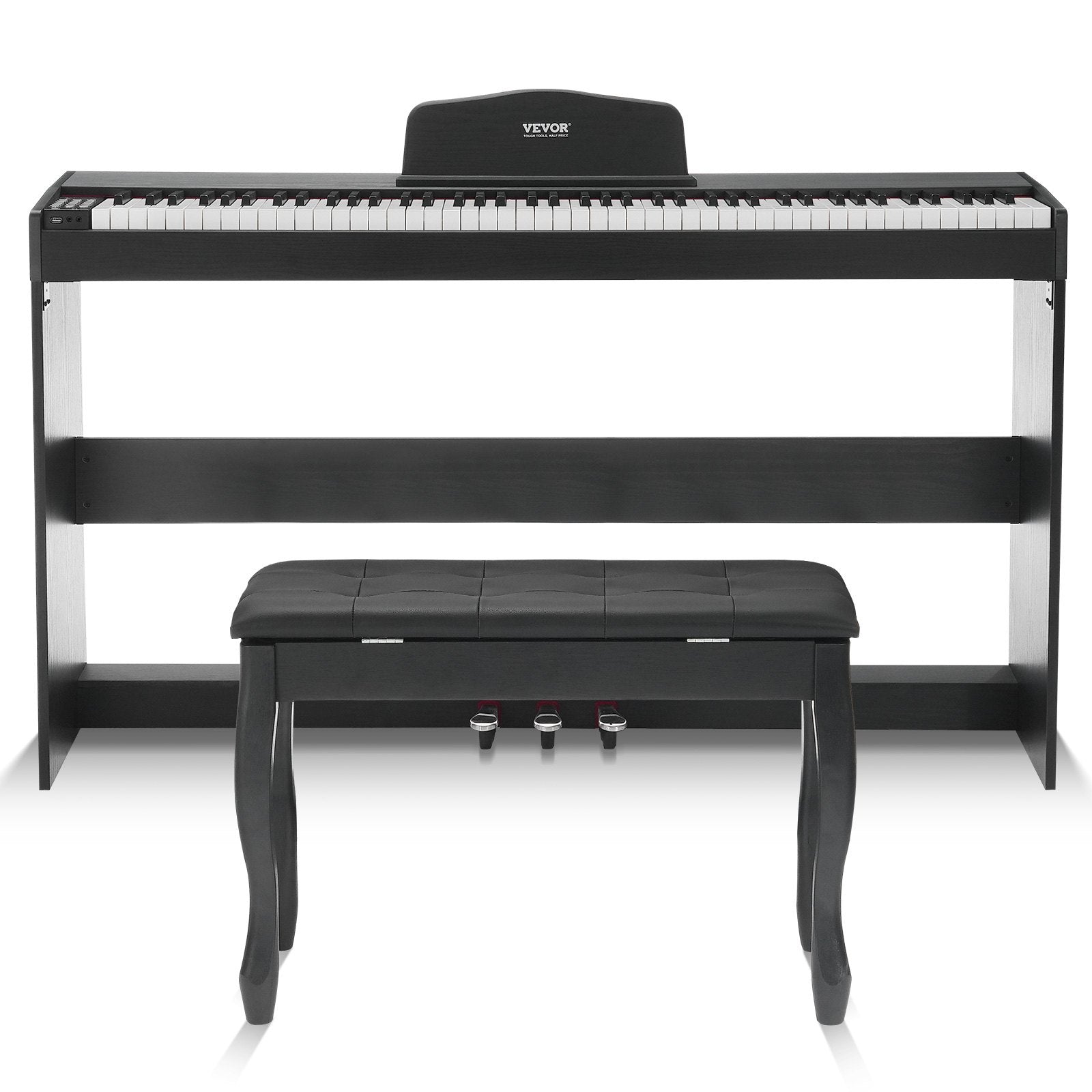 MIDI & Bluetooth Transmission: The 88-key piano features multiple transmission methods that facilitate efficient connection. Equipped with audio output port, microphone port, audio input port, so you can plug in headphones for immersive learning without disturbing your neighbors. Stable music stand for comfortable reading. Piano stickers included for quick key identification.