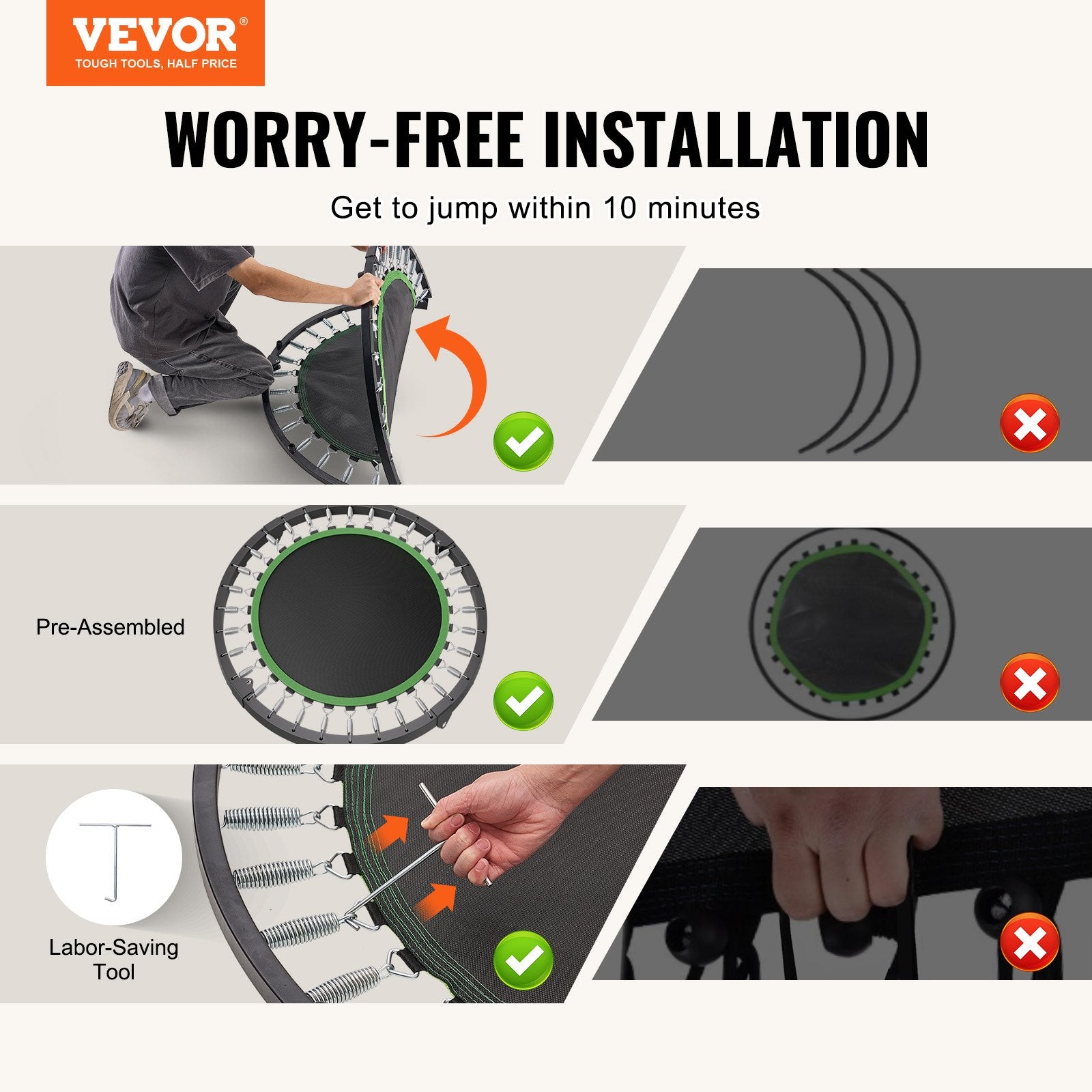 4-Level Adjustable Height: Achieve the perfect bounce height with the mini trampoline's 4-level adjustable handlebar, from 39 to 48.5 inches. Adjust the height to match your comfort level and maximize your workout performance.