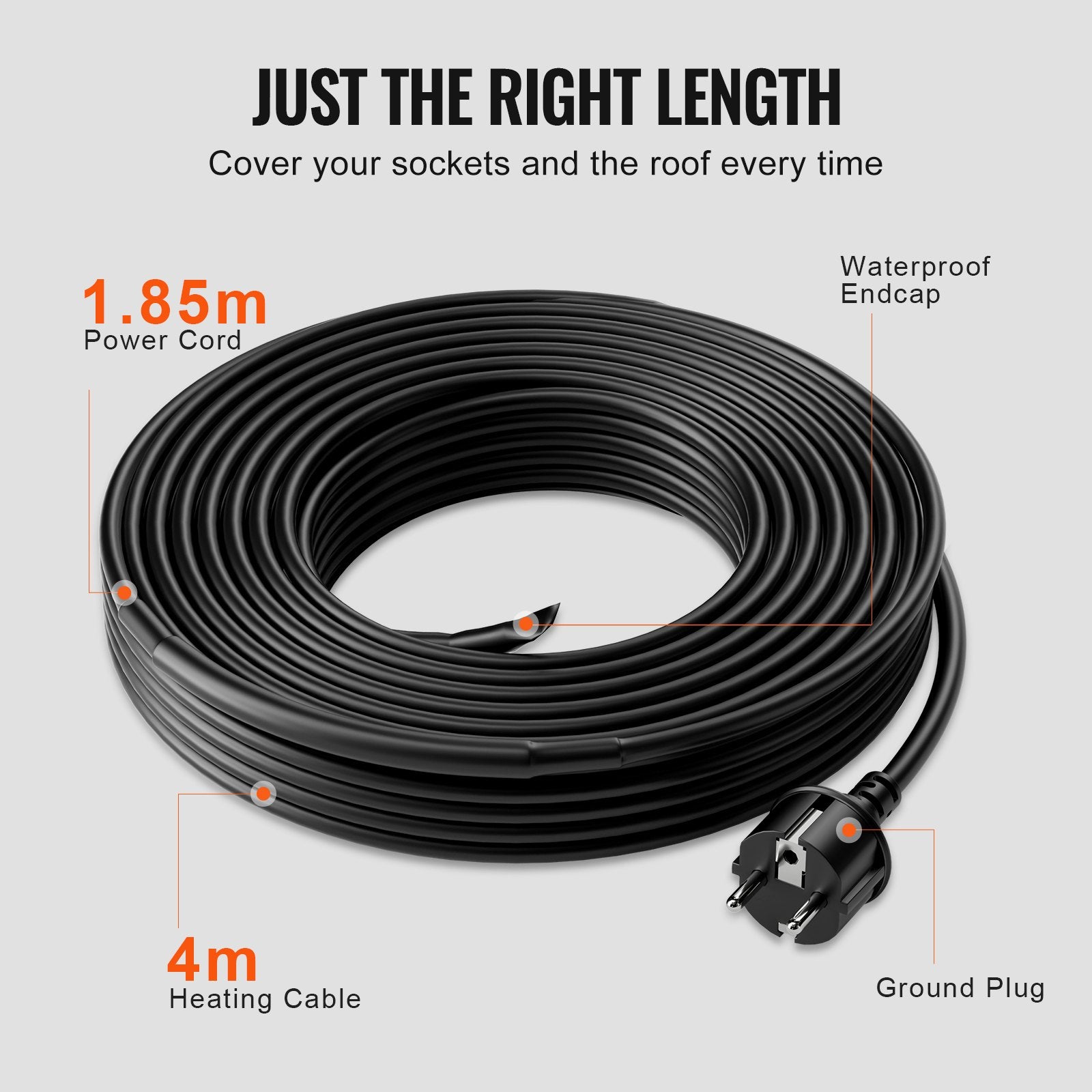 Beat the winter: Treat your pipes and roofs right and withstand the harshest winters. Our self-regulating pipe heating cable with 1.85m power cord is designed to prevent ice dams from forming on roofs, downspouts and gutters. Protect your roof from damage and leaks. Keep water flowing in gutters and downspouts continuously.