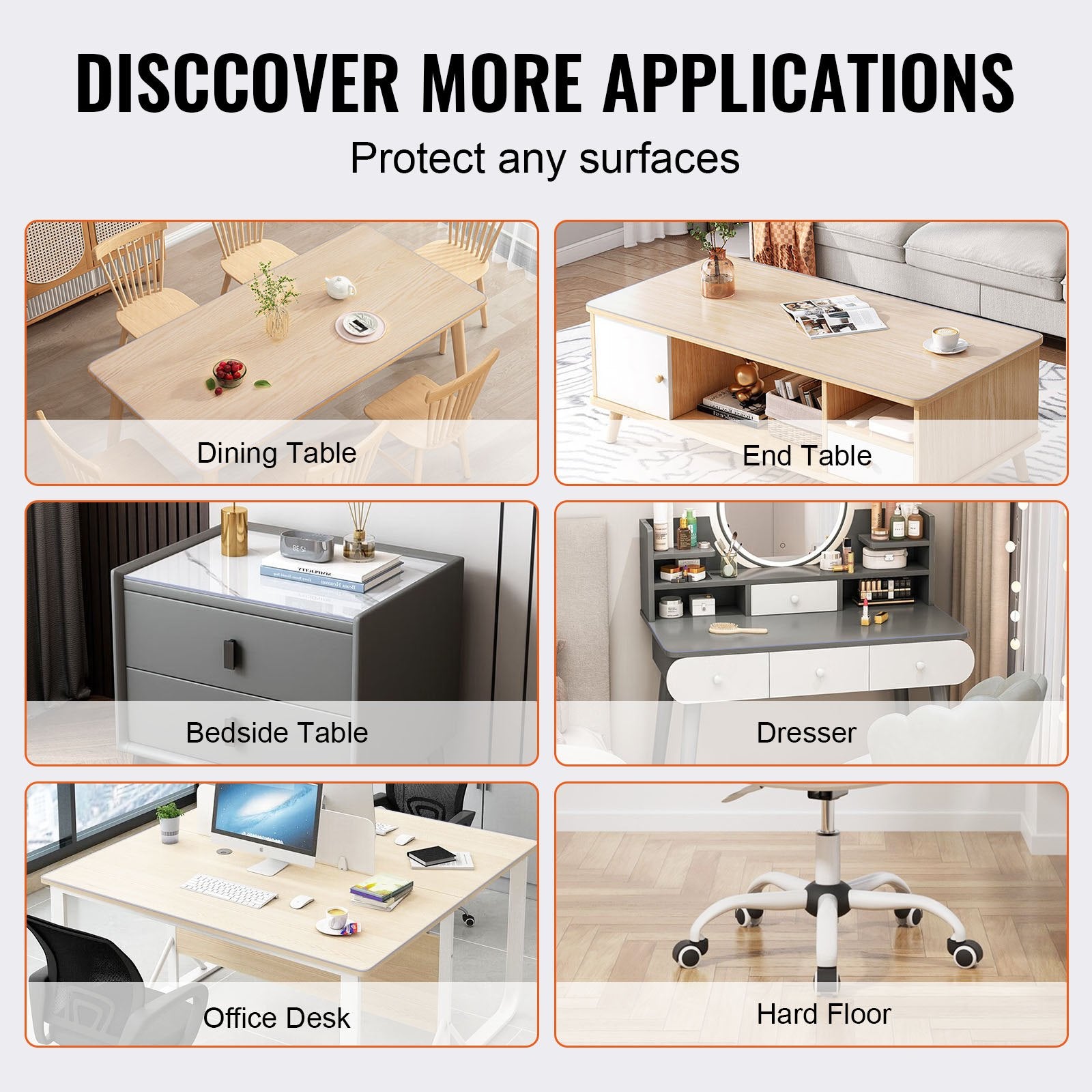 Protect Your Table: Our 36" x 72" PVC table cover provides all-round protection for your desk and protects your desk from scratches, stains, watermarks and burns. Say goodbye to worries about damage caused by hot cups, cutlery or spills. With the clear color, our table cover brings life back to your desk.