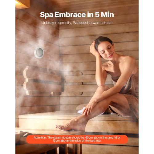 Snabb och kontinuerlig ånga: Njut av lugnande ånga på under 5 minuter och bibehåll en jämn effekt från 10 minuter till 24 timmar. Den är utformad som en kraftfull ångduschgenerator och töms automatiskt efter användning, vilket ger en sömlös ånggeneratorupplevelse för hemmabruk.