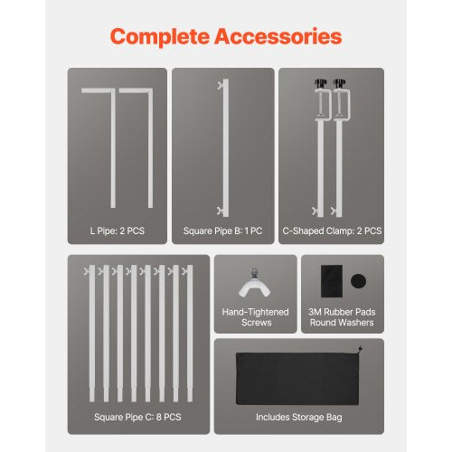 Storage Bag for Easy Carrying: The table stand includes square tubes (2 L tubes, 1 square tube, 8 C-shaped tubes, 2 C-shaped tubes), 3M rubber pads, round pads, an Allen key, hand-drawn screws and a storage bag, ensuring convenient storage and carrying. Protect your stand from scratches and keep it as new for future use.