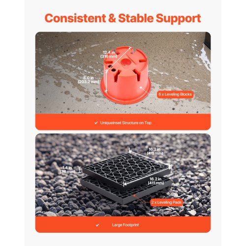 Complete Leveling Kit: This set includes 6 cylindrical blocks and 2 square RV leveling pads. They are designed to increase the support surface and keep your RV steady on uneven, soft or rocky ground. Use the square pads alone or stack them with the blocks for extra stability.