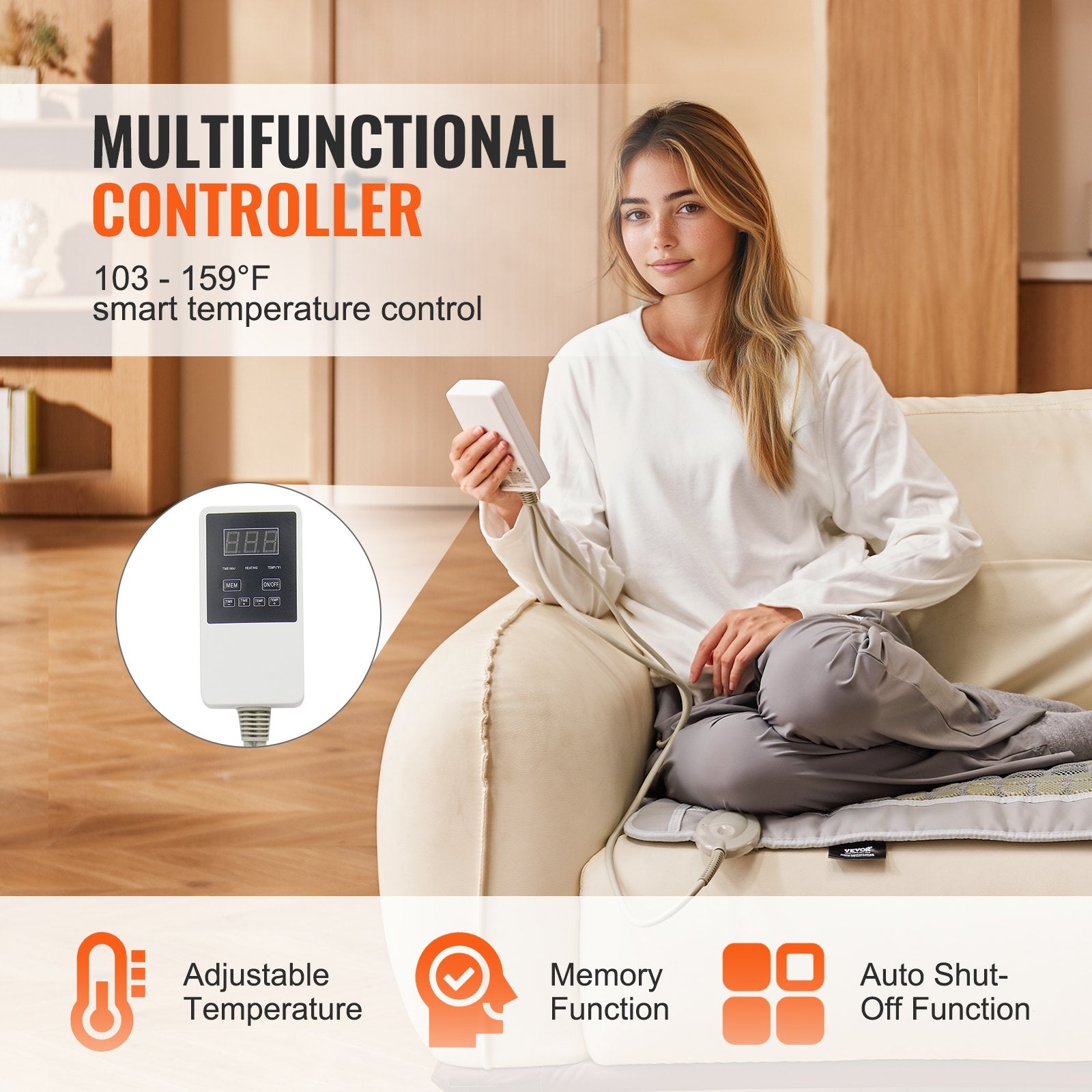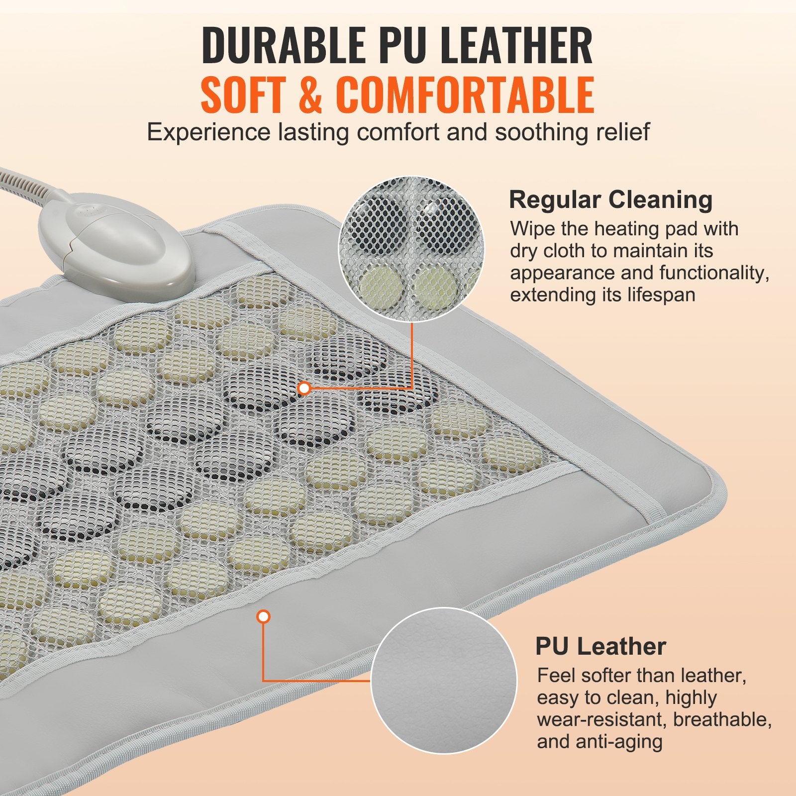 3-in-1 Health Therapy: VEVOR 23.9" x 15.8" Far Infrared Heating Pad combines professional far infrared technology, 52 natural jade stones and 20 tourmaline stones to deeply penetrate and relieve body muscles, promote blood circulation, improve sleep quality, and restore the body's relaxation vitality and stress relief, perfect for daily relaxation.