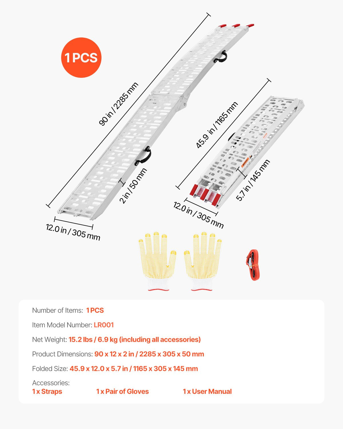 750 lbs aluminum ramps 1 pc Heavy duty loading ramps with handles