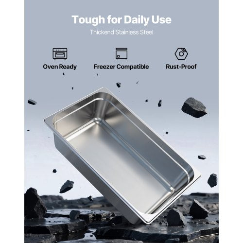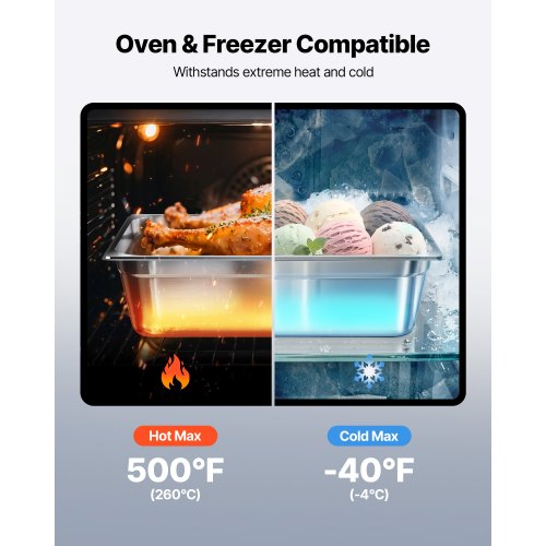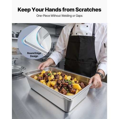 Rostfritt stål av kommersiell kvalitet: Vår hotellpanna i rostfritt stål är tillverkad av rostfritt stål av kommersiell kvalitet 22-gauge SS201 för långvarig hållbarhet och utmärkt rostbeständighet. Den är idealisk för att förvara både varm och kall mat och tål temperaturer från -40℉ till 500℉ (-4℃ till 260℃). Lämplig för diskmaskiner, kylskåp, frysar med mera som tål höga temperaturer.