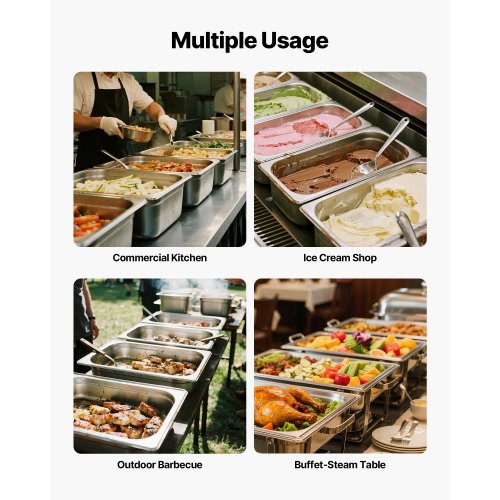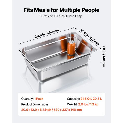 Gott om matkapacitet: Denna ångpanna i rostfritt stål i storlek 1/1 (15 cm djup, 1-pack) erbjuder en generös kapacitet på 20,5 liter / 82 qt, vilket uppfyller dina dagliga matlagningsbehov. Perfekt för matlagning, förvaring och servering av mat, den är utmärkt för att förvara kött, grönsaker, frukt, glass och mer.