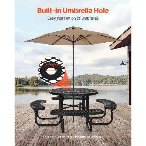 Inbyggt paraplyhål: Perfekt för utomhusbruk, uteplatsmöblerna kommer med ett praktiskt paraplyhål för snabb installation av en parasoll. Den skapar ett svalt, skuggigt område under varma sommardagar och ger skydd mot direkt solljus eller lätt regn, vilket förbättrar din utomhuskomfort i växlande väderförhållanden (OBS: Paraplyet ingår inte.)