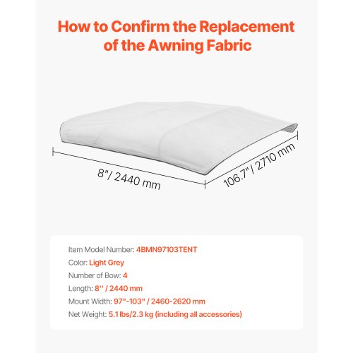 Reservtak för båt med 4 bogar: Denna båtmarkis mäter 96" L x (97"-103") B. Du kan välja rätt storlek baserat på din båts och ditt taks mått. Den kan installeras sömlöst på olika typer av båtmarkisramar, vilket säkerställer mångsidighet. Obs: Stödstänger och ram i aluminiumlegering ingår inte.