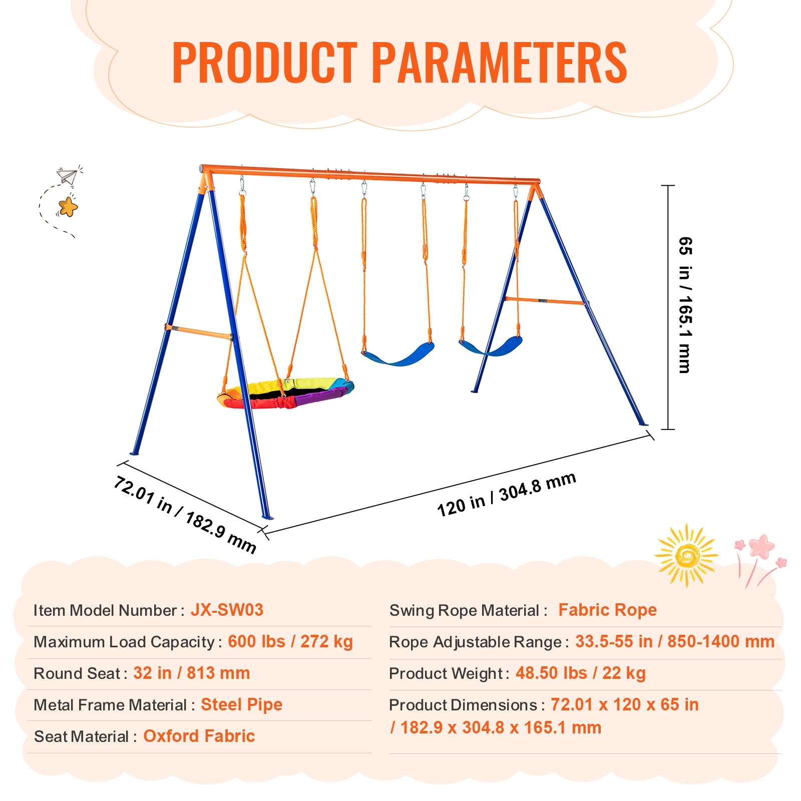 Premiumsäte: Våra gungställningar för bakgård kommer med en högkvalitativ sits i Oxford-tyg, känd för hållbarhet och färgäkthet. De är motståndskraftiga mot slitage även efter långvarig användning. Justerbara högkvalitativa PE-linor är solbeständiga och bleknar inte med åren.