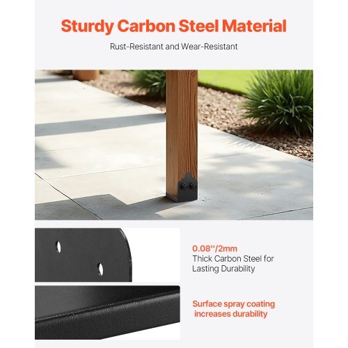 Hållbar och robust: Denna stolpfäste är tillverkad av kolstål med en väggtjocklek på 0,08 tum, vilket garanterar långvarig hållbarhet. Ytan är pulverlackerad för korrosions- och rostbeständighet, vilket ger lång livslängd.
