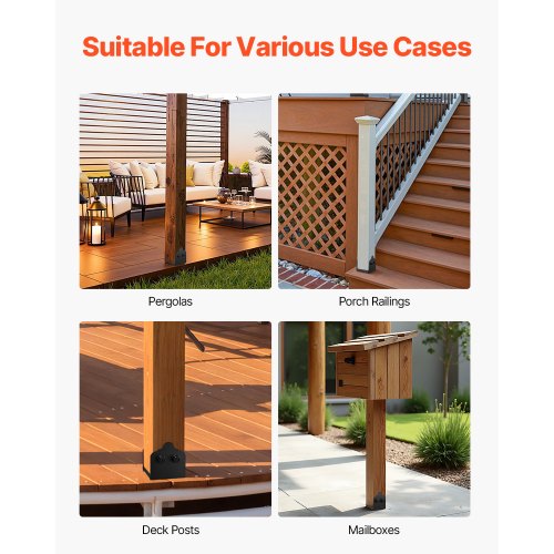 Bred användning: Stolpens bas kan installeras på olika ytor, vilket gör den mycket lämplig för verandaräcken, pergolor, pelarstöd med mera, och ger säkert stöd.