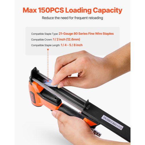 Hög laddningskapacitet: Vår häftpistol har ett laddningsmagasin med stor kapacitet som rymmer upp till 150 klammer åt gången, vilket säkerställer effektivt arbete utan frekvent omladdning. (Klammer ingår ej; köp separat)