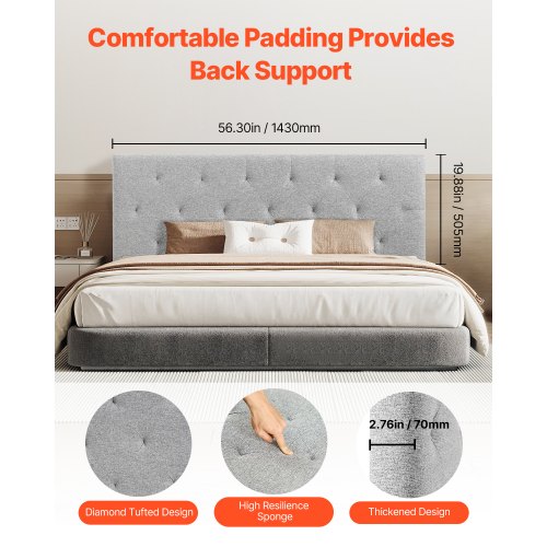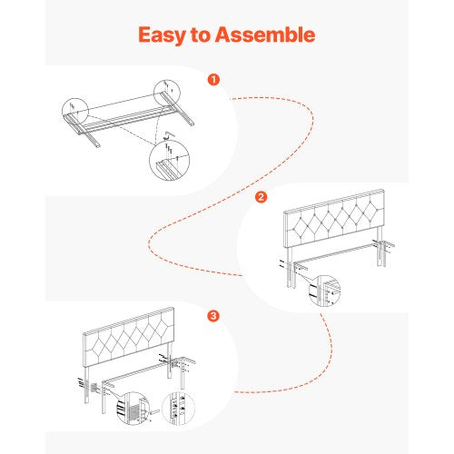 Justerbar höjd på huvudgaveln: Denna huvudgavel har ett justerbart höjdområde från 96 cm till 122 cm, vilket gör att den enkelt passar olika sängramar. Inga problem med kompatibilitet, och installationen är enkel, så att du enkelt kan anpassa din sovrumsinredning.