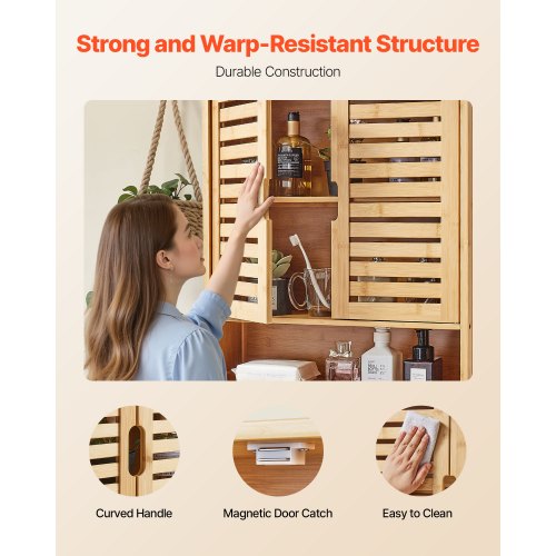 Badrumsskåp med 2 dörrar och justerbar hylla, Förvaring över toaletten Medicinskåp Väggmonterad, Hängande Organiserare med Hyllor och Öppen Skiljevägg för Tvättstuga Kök Toalett | EU