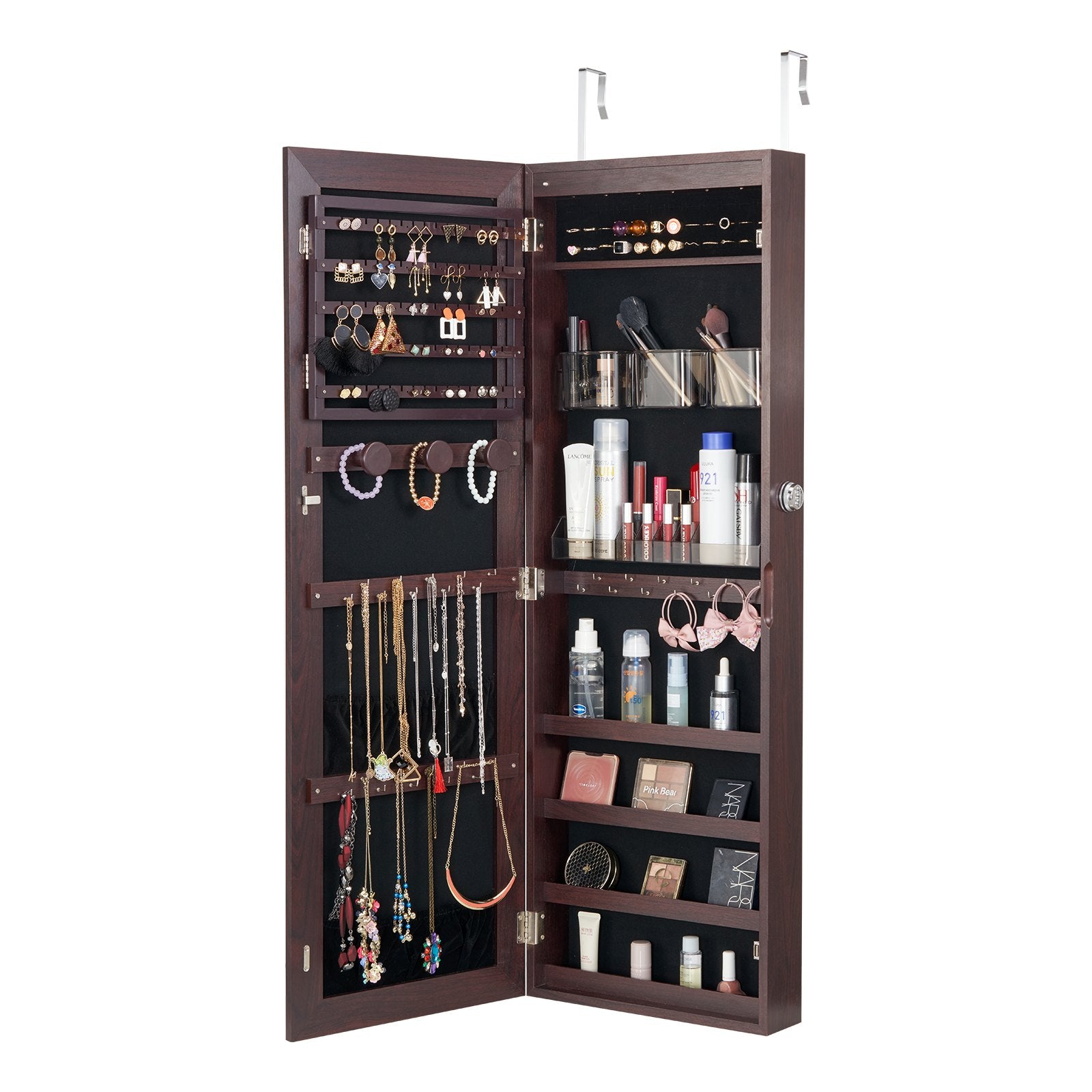 Spegel Smyckesskåp 42,52 tum Låsbar vägg- eller dörrmonterad Armoire Brun