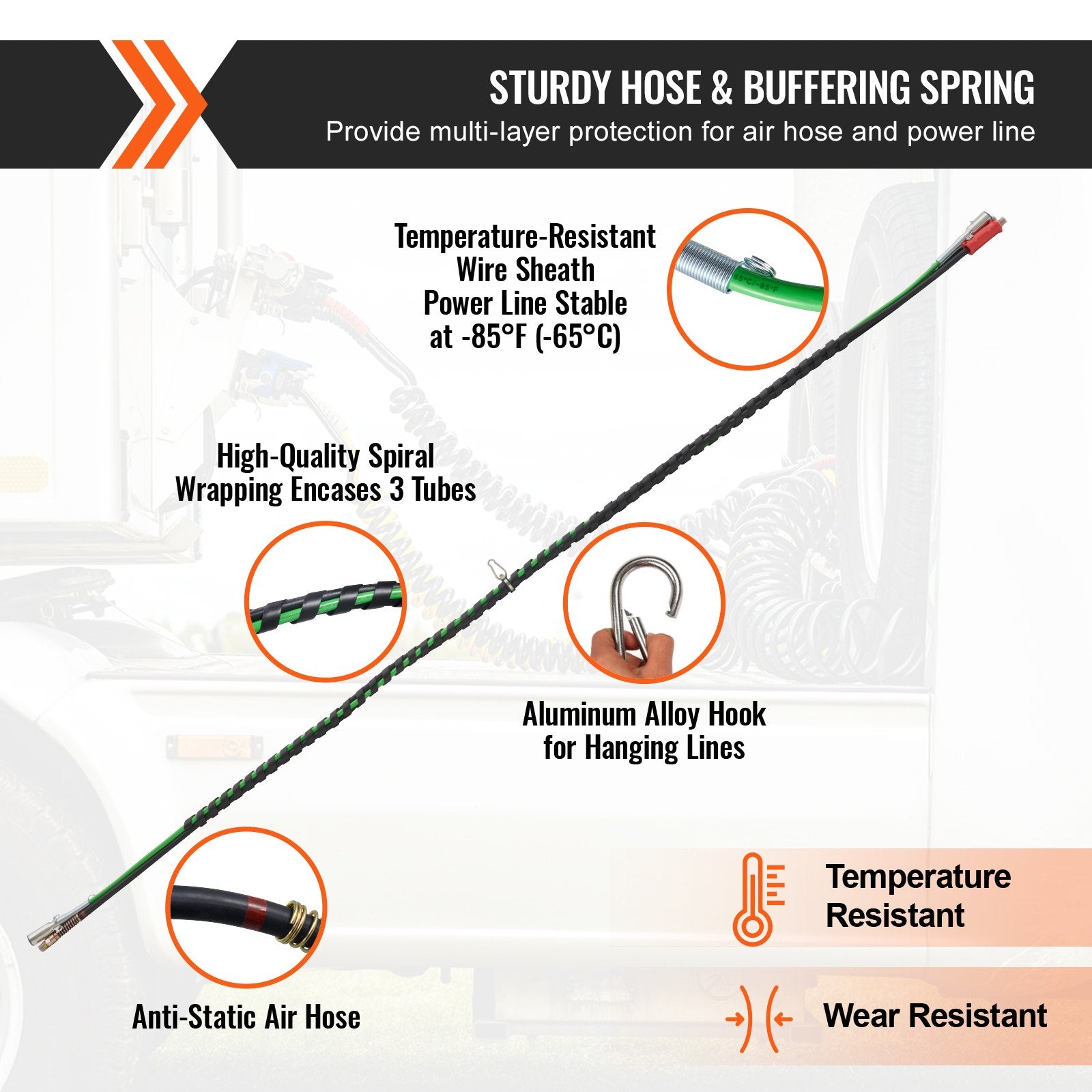 12FT Semi Truck Air Lines Kit: VEVOR 3-i-1 semi-lastbilsluftledningssats är den idealiska lösningen för att ersätta gamla, slitna och trassliga standard ABS-luftkraftledningar. Den innehåller 1 förinstallerad krok och 1 teflontejp, vilket gör den perfekt för luftslangssatser med mindre slitage. 12 fots längd är kompatibel med små lastbilsmodeller som Philips 30-2151, 302171; Tectran 169157, 13S15401; och OTR 6818, 6814.
