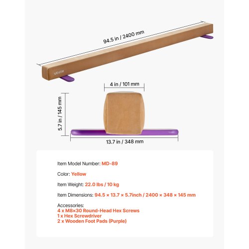 Idealisk längd på 2,4 meter: Denna extra långa balansbom mäter 240 cm, en bekväm storlek för barn i alla åldrar att träna med. Den 10 cm höga toppen passar tävlingsbalkar, medan den 10 cm höga basen ger ett stabilt stöd för att undvika tippning, vilket garanterar idrottarens säkerhet.