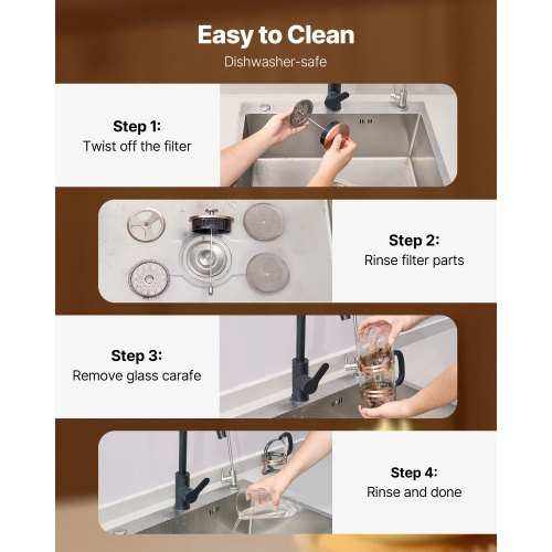 Lätt att rengöra: Denna franska kaffepress har en slät glasyta, avtagbart filter och kolv för enkel rengöring. Alla delar är lätta att ta isär för djuprengöring och tål maskindisk.