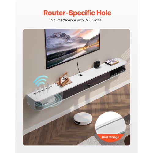 Organiserad förvaring: Håll allt på plats med den dedikerade routerhålsdesignen – perfekt för att hålla dina enheter prydliga samtidigt som du säkerställer starka Wi-Fi-signaler. Det multifunktionella förvaringsutrymmet kan förvara böcker, routrar, set-top-boxar och mer, vilket hjälper dig att skapa ett ordnat och fritt utrymme.