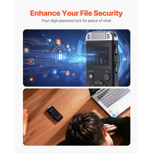Snabb och enkel filöverföring: Vår digitala ljudinspelare stöder USB 2.0 för att ansluta till en dator eller mobiltelefon, vilket gör det enkelt att säkerhetskopiera inspelningsfiler eller ladda ner musik. Dessutom stöder den förlustfria musikformat som MP3, WMA, FLAC och APE, så att du kan njuta av högkvalitativt ljud