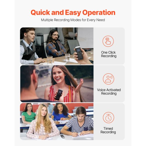 Mångsidig för alla situationer: Den här röstaktiverade inspelningsenheten stöder Line-in-telefoninspelning, AB repeterad uppspelning, uppspelning med variabel hastighet, inspelning med en knapptryckning och automatisk besparing på låg batterinivå. Den är fullpackad med flera funktioner och passar studenter, professorer och journalister