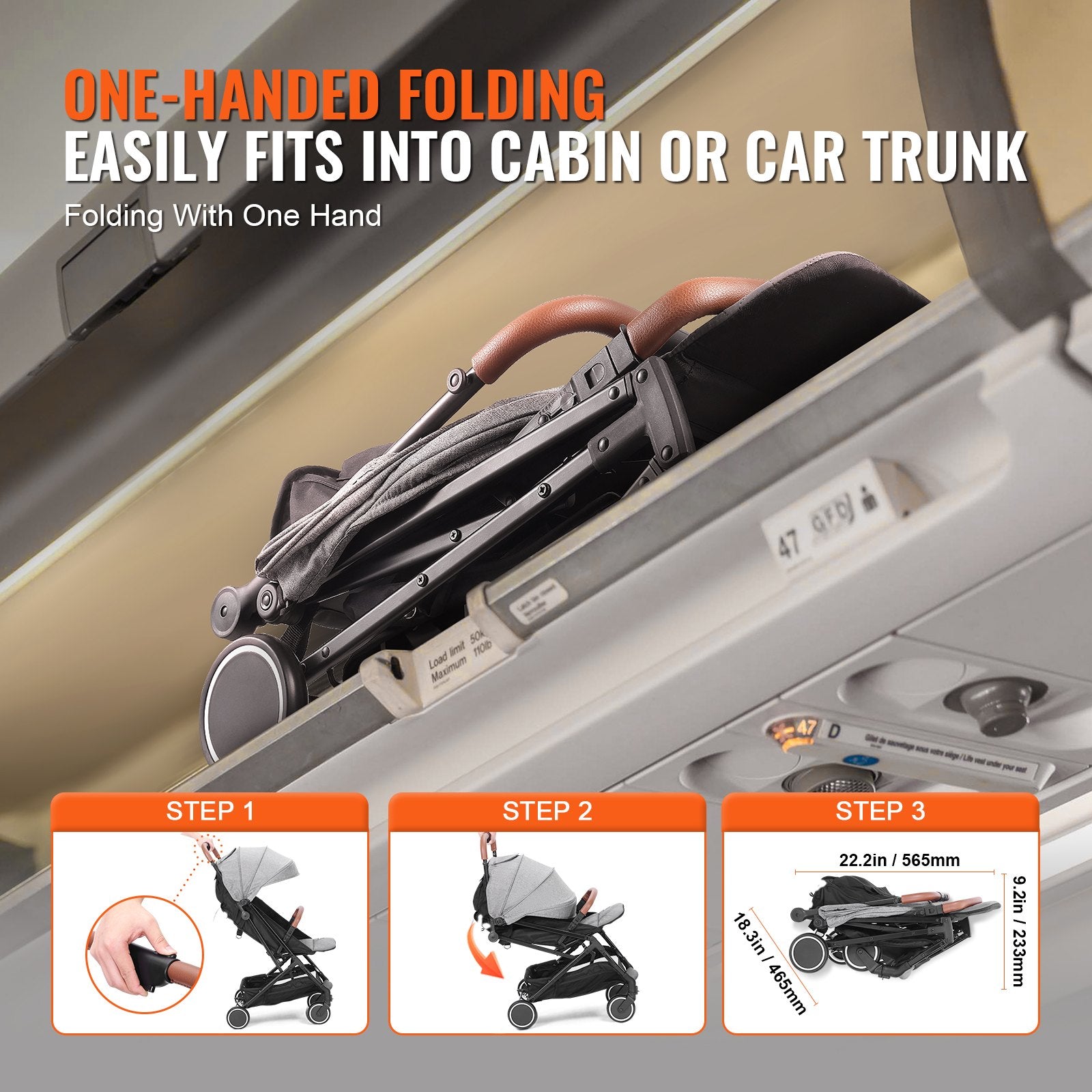 Enhandsvikning: Vikning och förvaring kan kompletteras med bara ett drag, med måtten 18,3 x 22,2 x 9,2 tum / 465 x 565 x 233 mm, lämplig för förvaring och användning i Disneyland, flygplansbagageutrymmen och bilkoffertar.