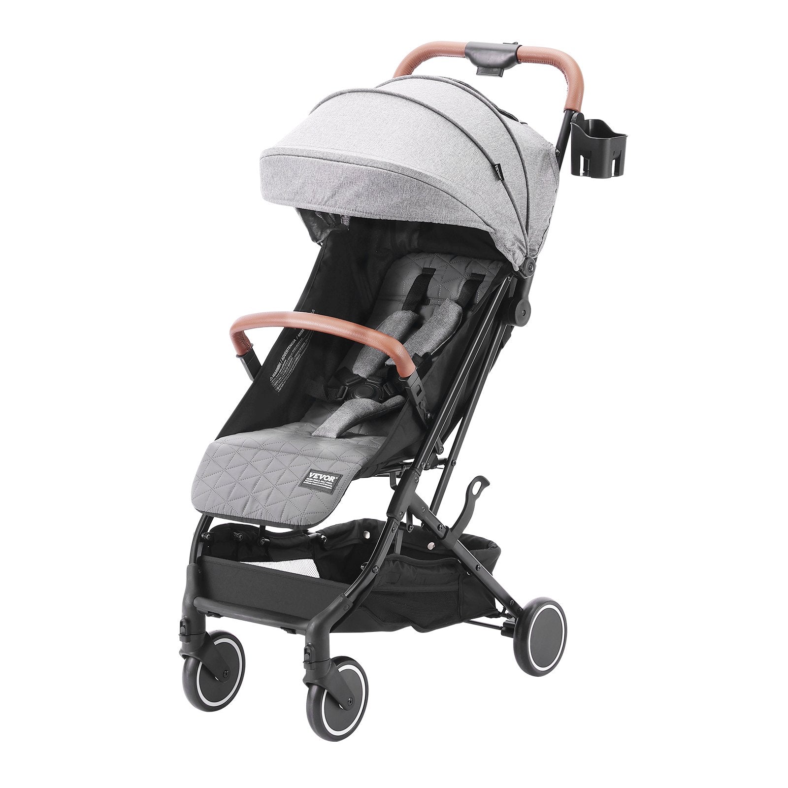 Standard Spädbarnsvagn, Småbarnsvagn med 95°-175° Justerbart ryggstöd & & 0/90° Justerbart Fotstöd & One-Click Folding, Newborn Barnvagn med Mugghållare och Bärväska, Mörkgrå