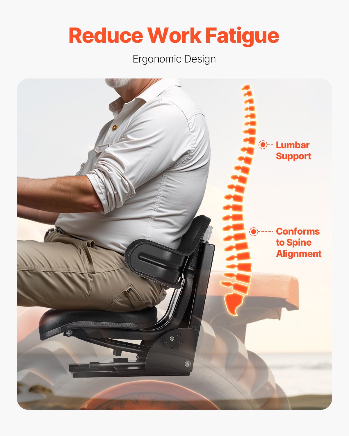 Bred kompatibilitet: Det justerbara traktorsätet är lämpligt för olika jordbruksmaskiner. Denna gaffeltrucksäte är kompatibel med alla följande traktormodeller från FORD / NEW HOLLAND: 2N, 8N, 9N, NAA, JUBILEE.