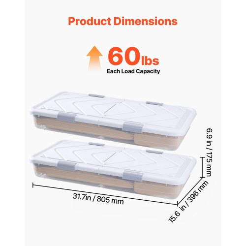 Extra stor kapacitet: Denna förvaringslåda under sängen mäter 89 x 42 x 17 cm och stöder upp till 14,4 kg. Tre enheter är utformade för att passa under vanliga sängar och kan staplas vertikalt. Dess rymliga kapacitet rymmer skor, leksaker, kläder, böcker och andra tunga föremål. Robust, stabil och hållbar
