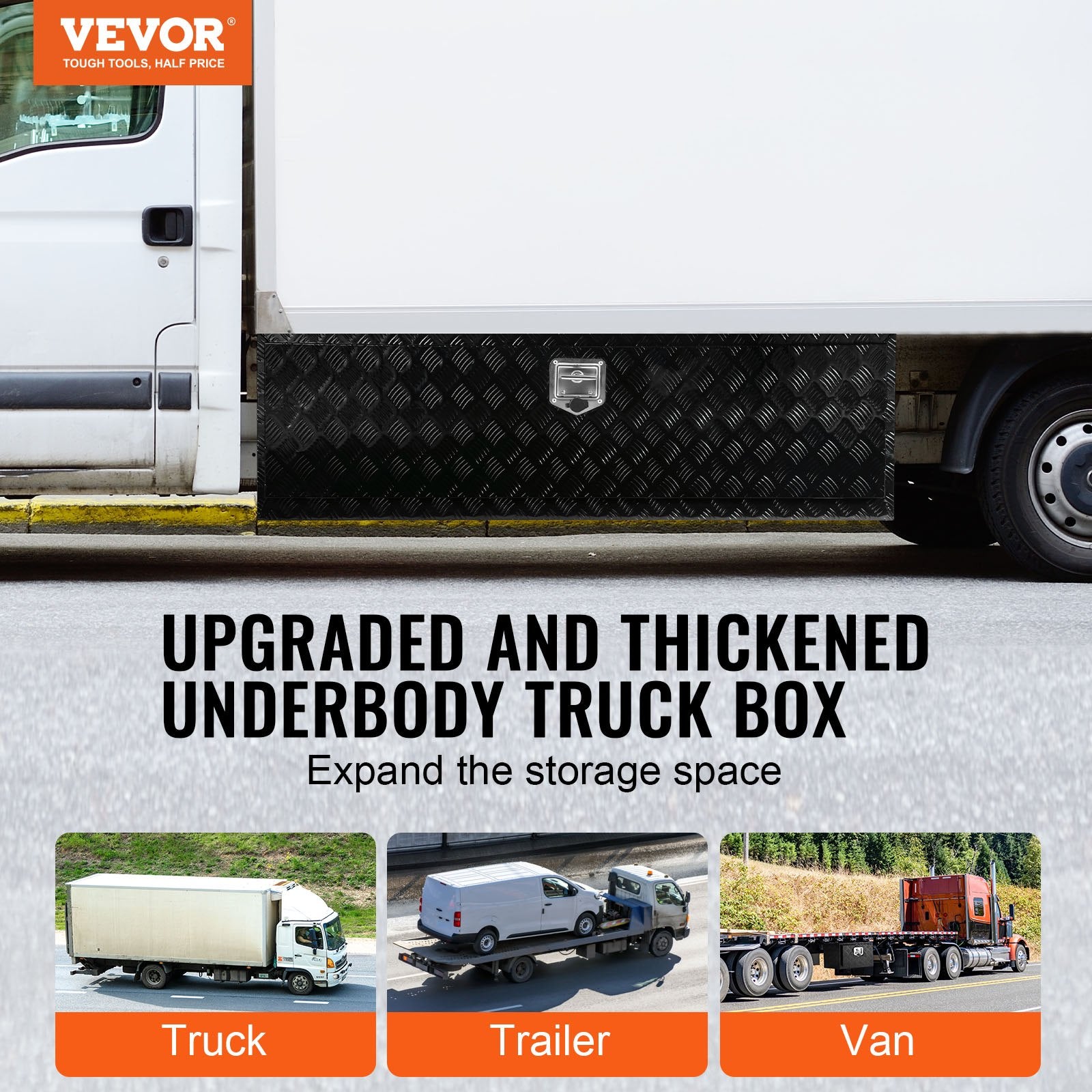 All-purpose Toolbox för var som helst: Är du trött på att vara oorganiserad? Underredets verktygslådan kan installeras inte bara på lastbilar och släpvagnar, utan även på olika ställen, till exempel på baksidan av en husbil eller pickupställ. Du kan lagra alla dina behov, från underhållsverktyg till campingutrustning, i denna lastbilslåda och hålla allt organiserat.