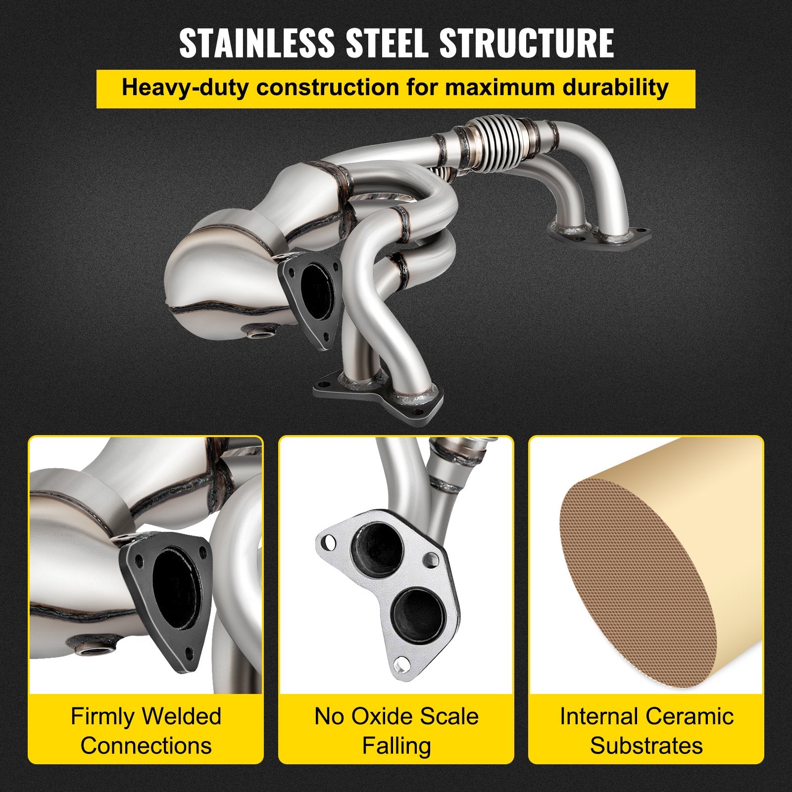 Standard OBD IV-kompatibel: Denna högflödesomvandlare uppfyller OBD IV-standarderna, vilket säkerställer att avgasutsläppen uppfyller de federala utsläppsnormerna. Det är dock olagligt att användas i Kalifornien som icke-CARB-kompatibel. Med denna högkvalitativa omvandlare behöver du inte oroa dig för MIL-kodproblem under din körning.