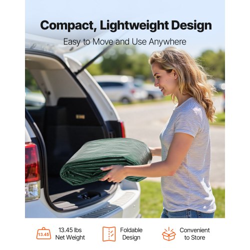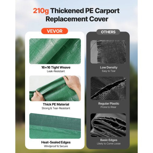 Hållbar konstruktion: Tillverkad med 210 g PE-vävd topp och 16×16-väv, är den portabla garagepresenningen starkare än vanlig presenning. Dubbla värmeförseglade sömmar och öljetter säkerställer en tät och säker passform som motstår sönderrivning och läckage.