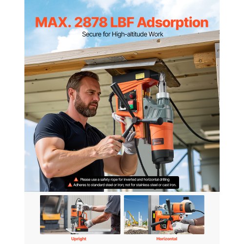 Förstå kraften: 2878 lbf / 12800N av robust kraft skapas av den elektromagnetiskt förtjockade basen, med rena järnankare, och magborrpressen arbetar stabilt i alla vinklar och stabilt under borrningsprocessen. Justerbara 10-växlade växlar uppnår exakt och effektiv drift enligt olika borrdiameter