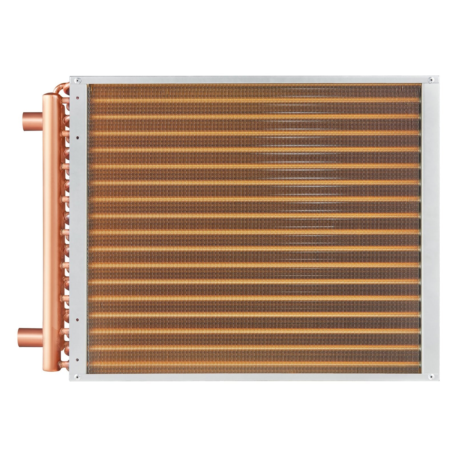 Effektiv värmeöverföring: Värmeväxlaren genererar upp till 160 kBtu per timme, med 12 aluminiumfenor per tum och 3 rader med 3/8" sömlösa kopparrör. De gängade kopparrören ökar kontaktytan och kapaciteten hos vätskemediet, vilket avsevärt förbättrar värmeväxlarens prestanda.