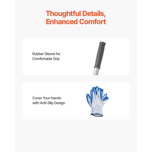 Bekväm och enkel att använda: Det justerbara handtaget i fyra sektioner ger bekvämlighet för personer i olika längder. Den halkfria gummihylsan ger ett bekvämt grepp. Utjämningsrakan kan roteras 180°, vilket eliminerar hårda lyft och golvvridningar. Varje detalj är utformad för att lindra din trötthet under arbetet.