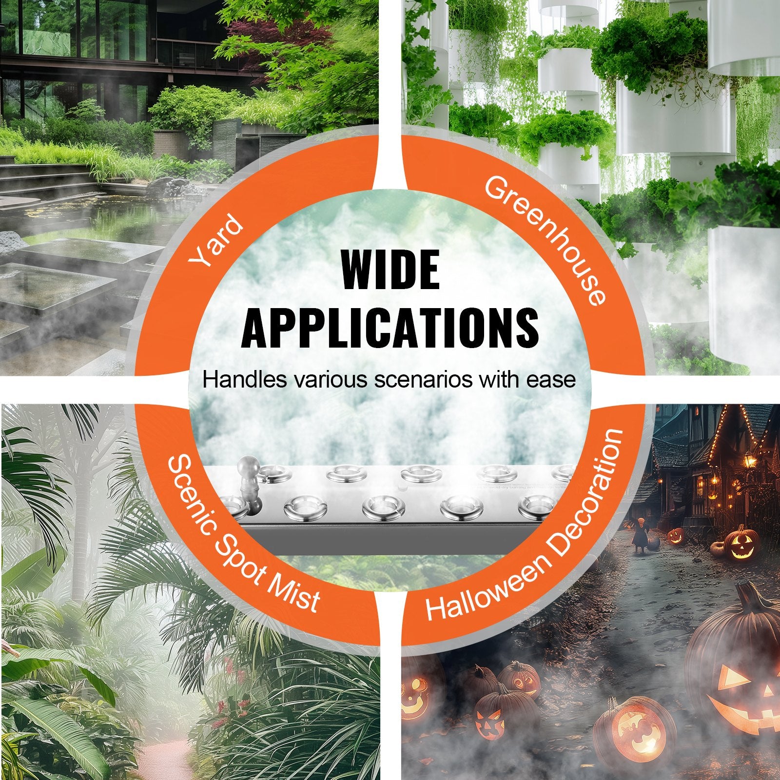 Hållbarhet: Ultraljudsdimmaskinen med 10 huvuden är gjord av 304 rostfritt stål och PP, med hög hållfasthet, korrosionsbeständighet och anti-skalningsegenskaper för hållbarhet. IP68 vattentät klassificering för dimmaskinen och en IP67 vattentät klassificering för strömförsörjningen säkerställer långvarig drift i fuktiga och dammiga miljöer.
