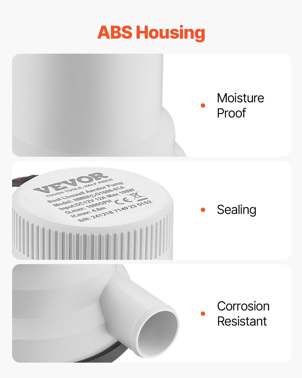 Dual Inlet Design: Denna marina luftningspump har två vatteninlopp, vilket gör att den kan anslutas till olika vattenrör för effektiv vattencirkulation i den levande fisktanken med bara en pump.