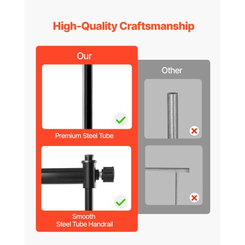 10-stegs höjdjustering: Den bärbara balettstången har 10 höjdjusteringar, var och en med ett steg på 4 tum, justerbart från 11,4 till 47,44 tum / 290–1205 mm. Stången har också ett låshandtag på sidan för enkel höjdjustering.