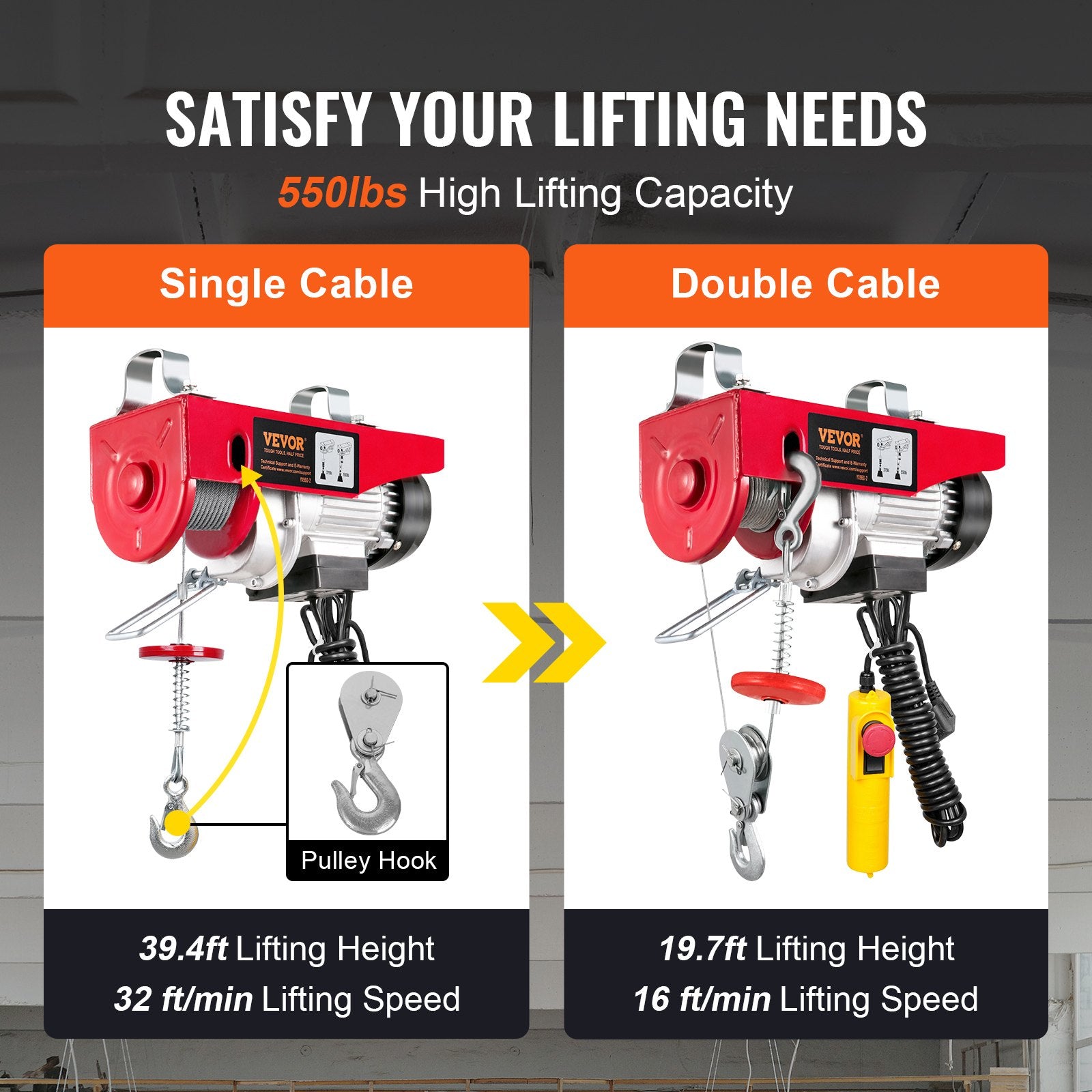 550 lbs lastkapacitet: Denna garagelyftmaskin kan enkelt lyfta små motorer, transmissioner, stora verkstadsverktyg eller byggmaterial. Kapacitet: 275 lbs (Single Line), 550 lbs (Double Lines).
