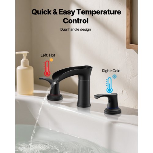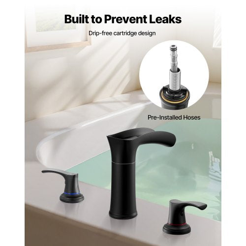 romersk badkarsblandare, 3-håls vattenfallsblandare, badkarsblandare i zinklegering med 2 handtag, romerska badkarsblandare däckmonterade för husdjurstvätt, bad för vuxna, mattsvart, temperaturkontroll | EU