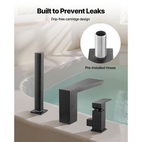 romersk badkarsblandare, badkarsblandare med 3 hål och vattenfall, romerskt badkarsblandareset med duschmunstycke och 1 handtag, badkarsblandareset för däckmontering för babyvård, mattsvart, rostfritt stål, droppfri | EU