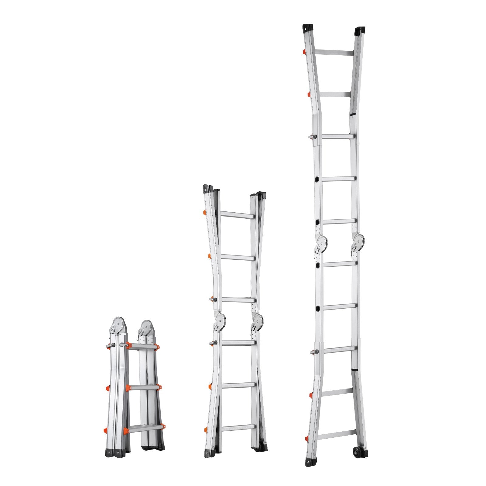 Mångsidig stege: Den här teleskoperande en ramstege anpassar sig till olika behov och kan enkelt växla mellan olika konfigurationer. Med utdragbara ben som når upp till 180° och en maximal höjd på 10 fot / 2880 mm, är den perfekt för underhåll eller vindsstädning.