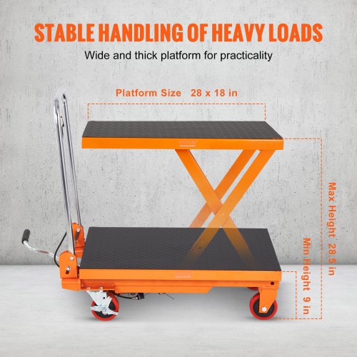 147 kg lastkapacitet: Ta itu med en mängd olika lyftuppgifter med självförtroende! Vår hydrauliska saxvagn är konstruerad för att hantera laster upp till 147 kg. Saxen och plattformen är tillverkade av premiumstål med en rostbeständig pulverlackerad yta. Detta säkerställer långvarig hållbarhet och stabilitet vid hantering av tunga föremål, vilket gör ditt arbete enkelt, effektivt och säkert.