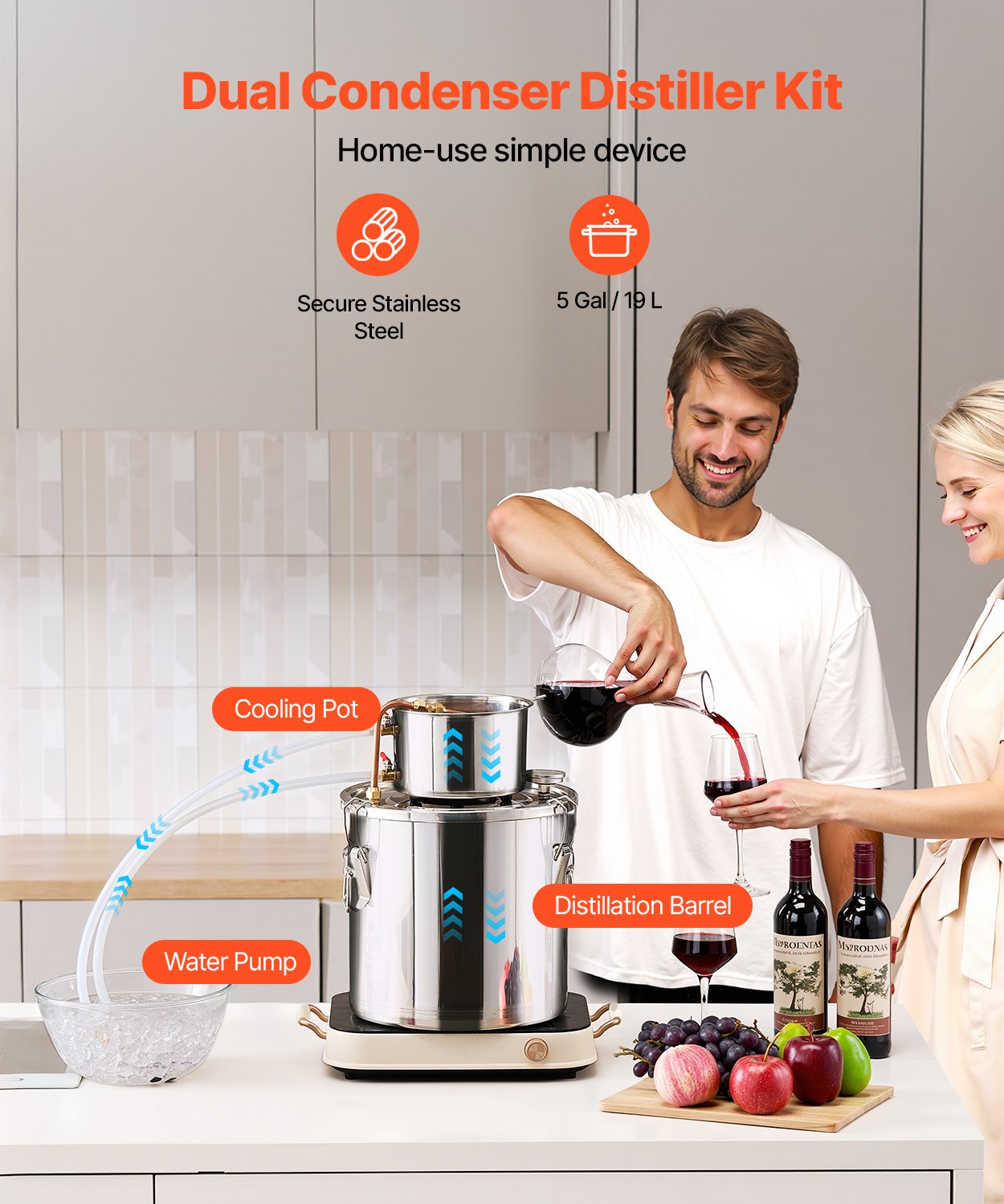 Moonshine Still 5 Gal Water Alcohol Distiller Brewing Kit Rostfritt stål