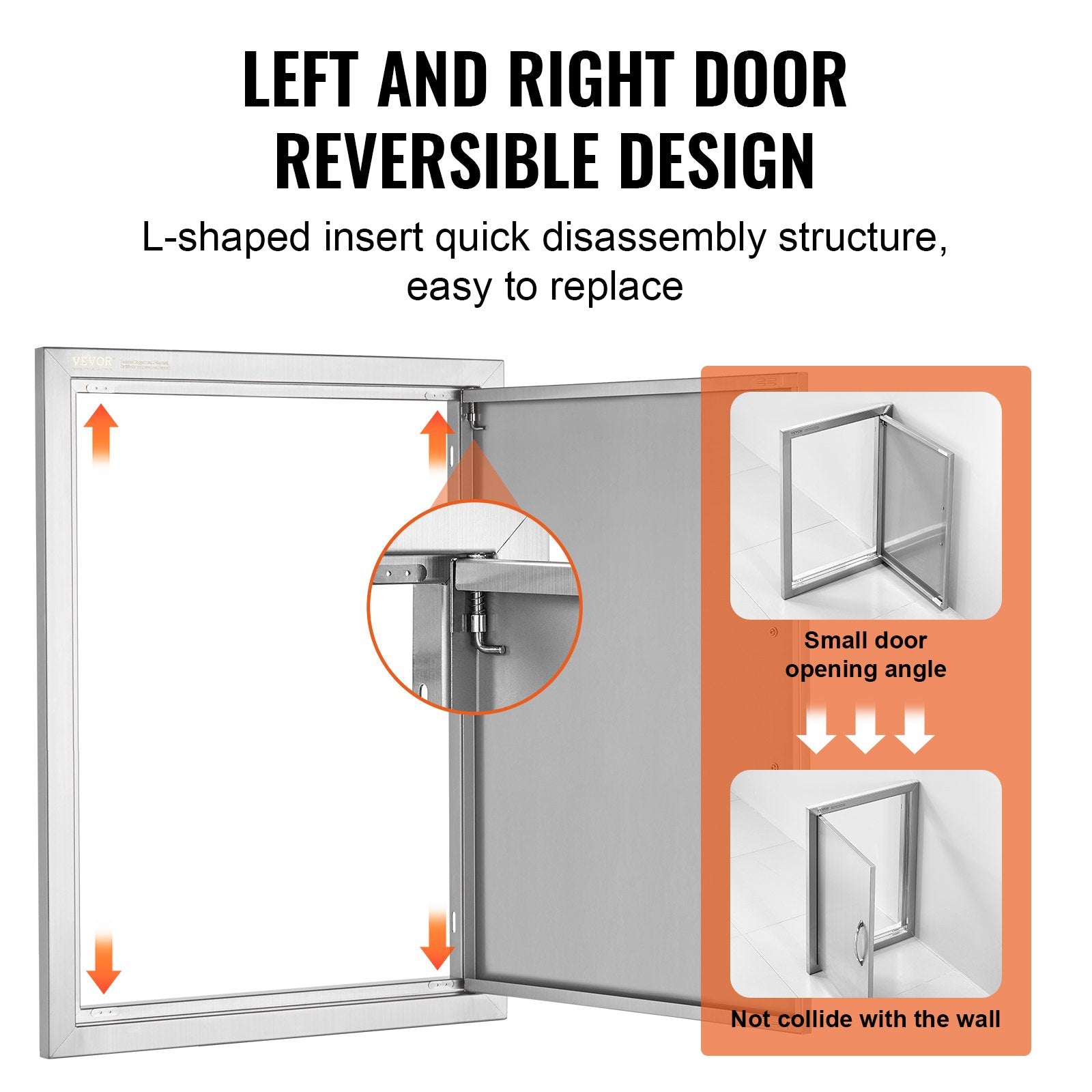 BBQ-åtkomstdörr, 508x686 mm enkel utomhusköksdörr, infälld dörr i rostfritt stål, vertikal väggdörr med handtag, för BBQ Island, grillstation, ytterskåp