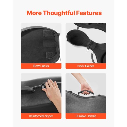 Stabil celloplacering: Inuti 4/4 cellofodralet håller en inbyggd halshållare cellon centrerad och upphängd under transport, vilket hjälper till att undvika kollisioner och skador.