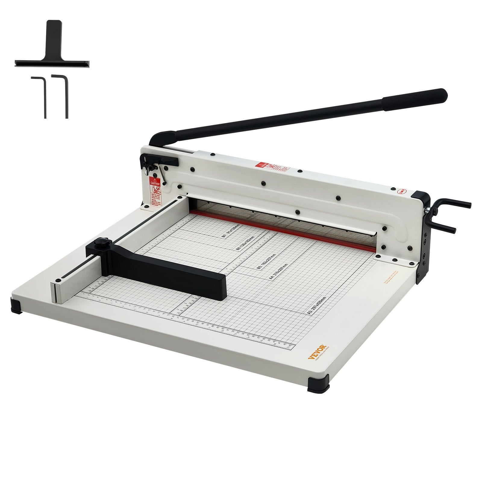 Snabb och exakt: VEVOR kraftiga pappersskärare är designad för enkel precision. Med en linjalguide och en bekväm pappersklämma är det enkelt att använda. Det ergonomiska handtaget säkerställer ett bekvämt grepp, vilket gör det enkelt att rikta in papper av alla storlekar.